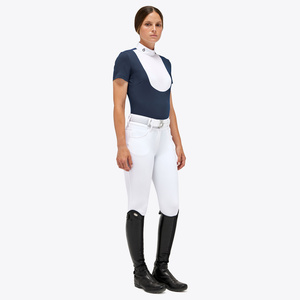 The T-shirt has a neckline decorated with a contrasting, pleated insert. This element looks amazing under a tailcoat, making your look elegant and unique.