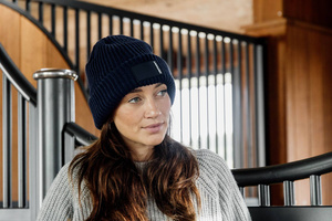 Stay warm and stylish during the cold winter months with the Rubber Logo Beanie!