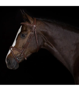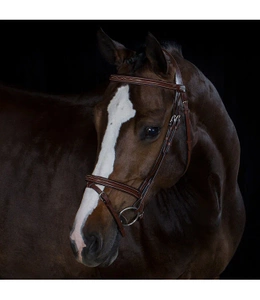 The leather is finished with cream-colored stitching and the buckles are silver-colored.