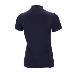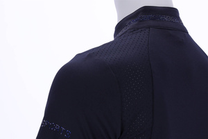 You are allowed to break a sweat in the saddle with the Summer Page Style Shirt by Schockemöhle Sports! The ladies functional shirt comes with a waisted shape, dries quickly and has an integrated UV protection. The fabric is breathable. Rhinestones on the shoulder seam and a rhinestone logo on the chest and the back ensure a shiny appearance.