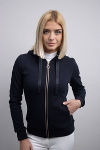Flat drawcord with tone-on-tone "Harcour" lettering and silver Harcour eyelet