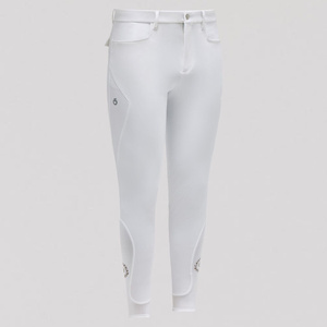 Your equestrian performance with these men's competition breeches will be unique. The knee grip offers optimal control, while mesh inserts provide superior ventilation. Featuring the Cavalleria Toscana logo, these breeches embody the pinnacle of functionality and sophisticated design.