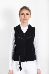 Designed with crystals on the front, the FREEJUMP AIRBAG CRYSTAL is a protective vest specially designed for equestrian sports to protect vital areas of the rider in the event of a fall. It can be worn over a thin layer of clothing (t-shirt, sweatshirt, or light sweater) or over a jacket.