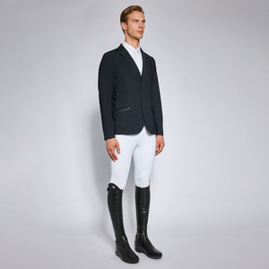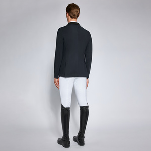 This Cavalleria Toscana men's riding jacket is made from lightweight highly breathable technical material, ideal for summer days. The water repellent fabric combines elegance and performance thanks to antibacterial and UV protections. It fits to the body following your movements, without constriction. The classic cut jacket is closed by three front button and features two front pockets and a breast-pocket. It's refined by an alcantara collar and contrasting piping.