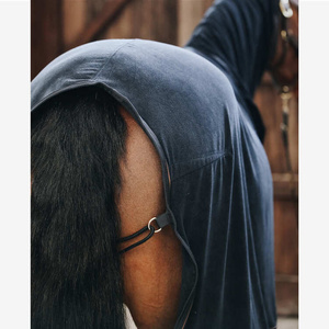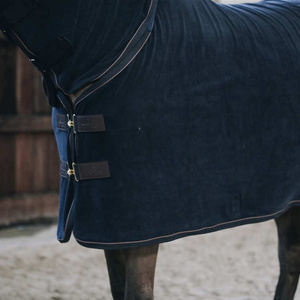 This super comfy and cozy full cover Towel Rug is the perfect rug to dry your horse extremely fast after training or bathing. It features a detachable hood with a covered zipper. The towel fabric is a 100% microfiber polyester fabric which absorbs the humidity from the inside to the outside. This allows your horse to dry in no time after a shower especially during colder days. There is a fancy leather piping and elegant front closures.