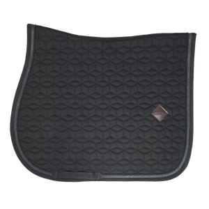 This saddle pad has a unique star quilting and features a stunning Glitter rope binding.