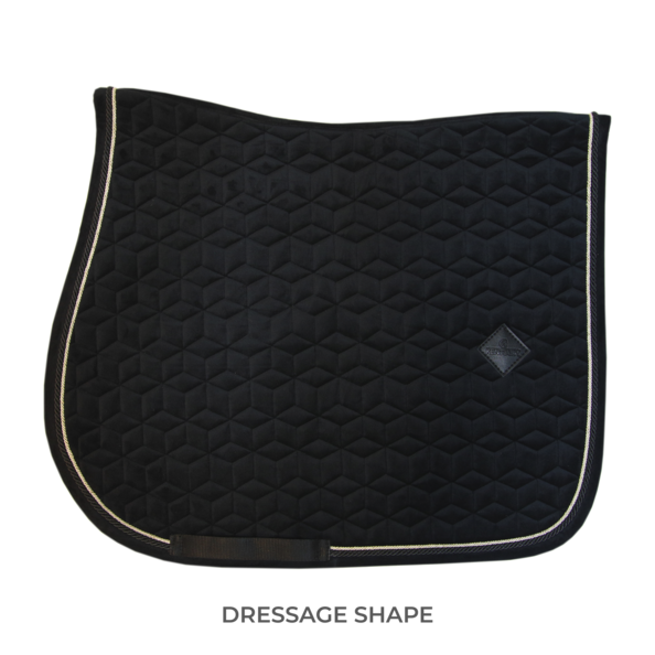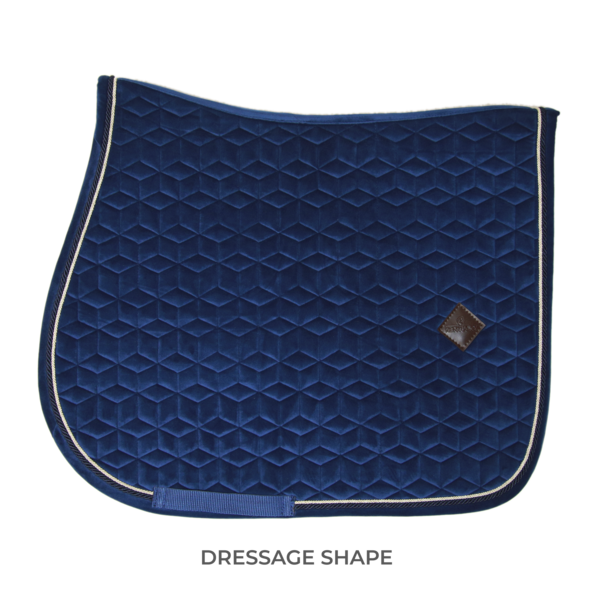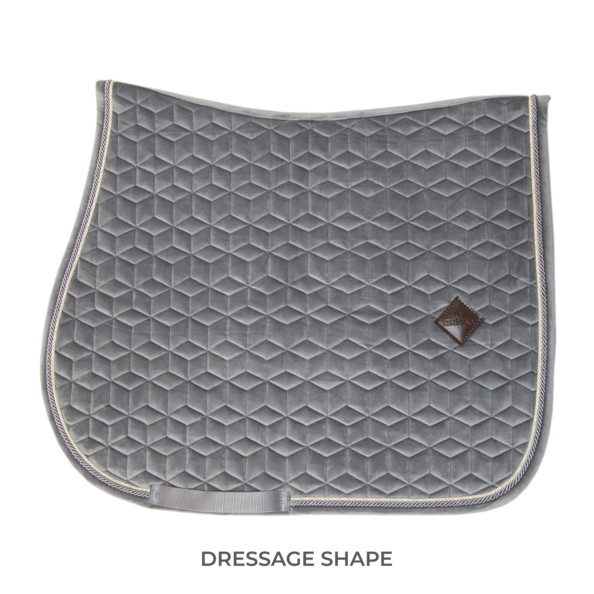 The Saddle Pad Basic Velvet Dressage is super stylish and classy, with a double twisted piping.