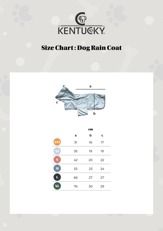 Our rain coat has been designed for dogs who like to be protected from the rain but don't need an extra layer. This coat can also be worn in any season, its material is very light, breathable and very comfortable. The smart fit perfectly conforms to your dog's shape and allows him to move freely.