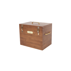The upper part opens and can be closed with two gold snap closures on which you can add a lock. Inside, you will find a big compartment (25x38x26 cm) which can be divided in two or three compartments thanks to 2 thin removable parts. You can organize the inside of your box your own way!