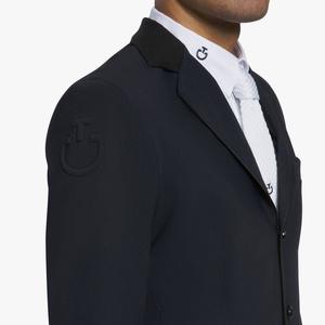 Men's riding tailcoat in a classic cut with an Alcantara collar and contrasting piping.