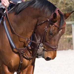 The adjustable bridge breastplate allows for a range of settings. It also features 2 D-rings on the chest section to attach a running martingale attachment.