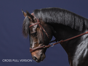 • Two Cross Pull straps that pass through the D buckles on the noseband, cross under the neck and attach to the D Motion headgear clip for Cross Pull riding