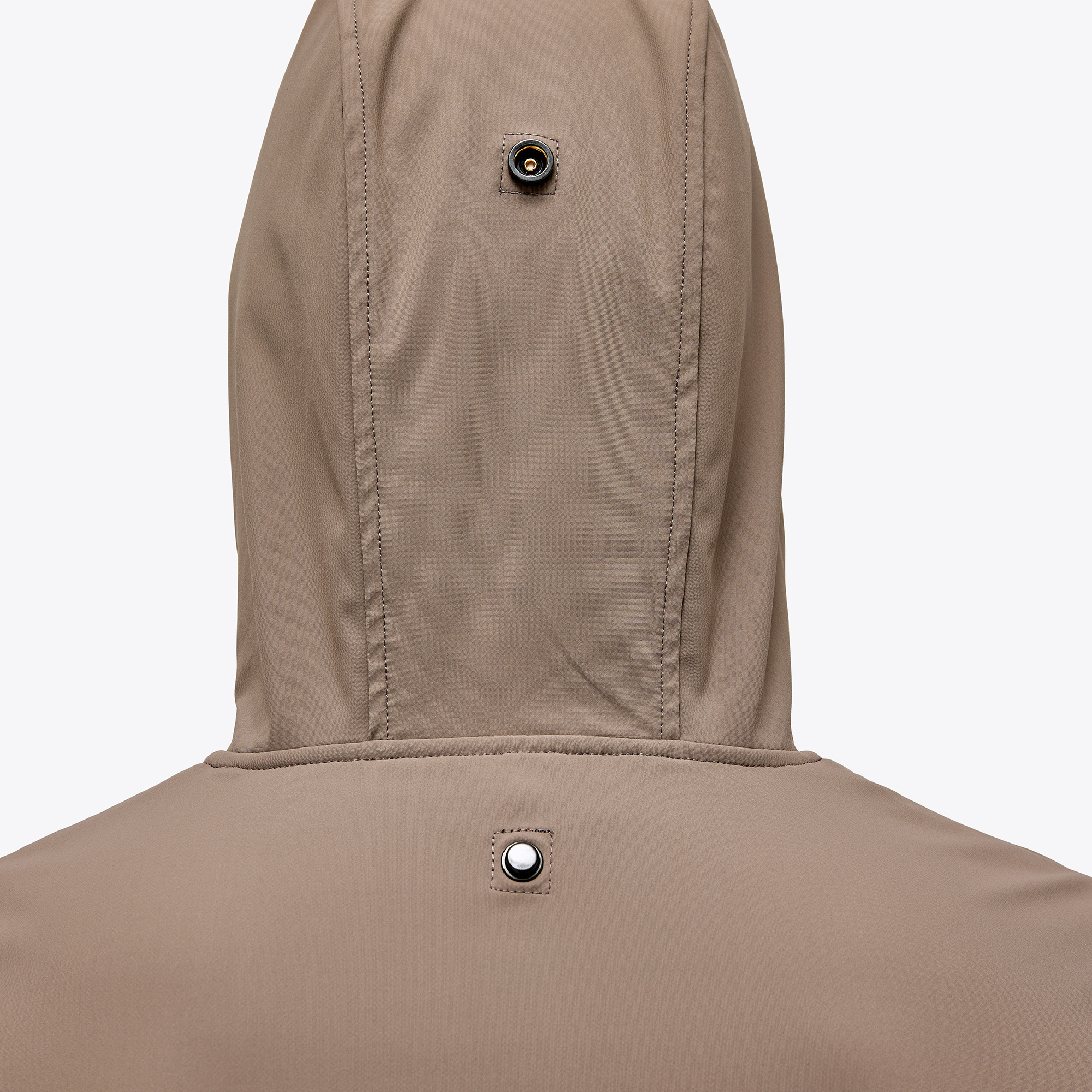 Regulowany kaptur i zamek błyskawiczny pozwalają dostosować kurtkę do różnych warunków pogodowych, utrzymując komfort jeźdźca na niezmiennym poziomie.