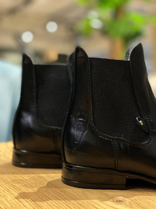 Po bokach obuwia znajdują się zamaskowane skórą gumy, które umożliwiają łatwe wkładanie stopy.
