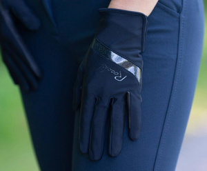 Z wierzchu dyskretnie błyszczące logo i pasek sprawiają, że rękawiczki mają błyszczący i elegancki wygląd, dostosowany do kobiecej dłoni.