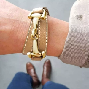 Model ten to wysokiej jakości, trzykrotnie owinięta bransoletka ze skóry nappa z ozdobnym elementem w kształcie wędzidła wykonanego ze stali nierdzewnej (długość 7 cm).