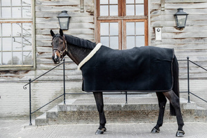 Sztuczna skóra owcza tworzy kołnierz dookołq szyi i klatki piersiowej i zapewnia optymalny komfort oraz bardzo fantazyjny wygląd. Jest to idealna derka do stosowania po treningu lub kąpieli konia w chłodniejsze dni. Ta fantazyjna derka polarowa Heavy pochłania pot lub wodę i sprawia, że Twój koń nie zmarznie.