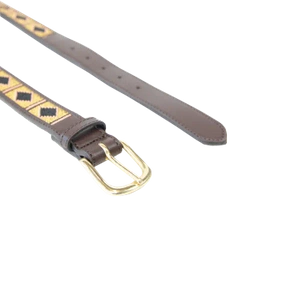 Pasek wykonany jest z wegańskiej i przyjaznej dla zwierząt sztucznej skóry. Materiał ten jest wodoodporny, nie pęka i nie twardnieje. Jest zatem dodatkiem, który będziesz nosić przez wiele lat. Klamra paska jest pozłacana.