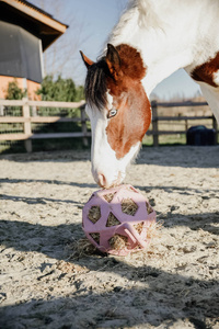 - Relax Horse Play & Hay Ball zapewnia wzbogacenie umysłowe i stymulację dla Twojego konia. Działa jako powolny podajnik, co czyni go idealnym sposobem na zapobieganie nudzie w stajniach lub na padoku.