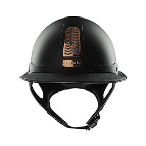 Kaski jeździeckie z serii Galaxy wyróżniają się matową, czarną skorupą i chromowanymi w kolorze miedzi akcesoriami.