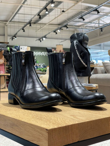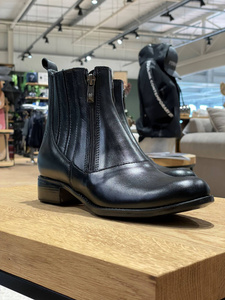 Po bokach obuwia znajdują się zamaskowane skórą gumy oraz dwa zamki, które umożliwiają łatwe wkładanie stopy.