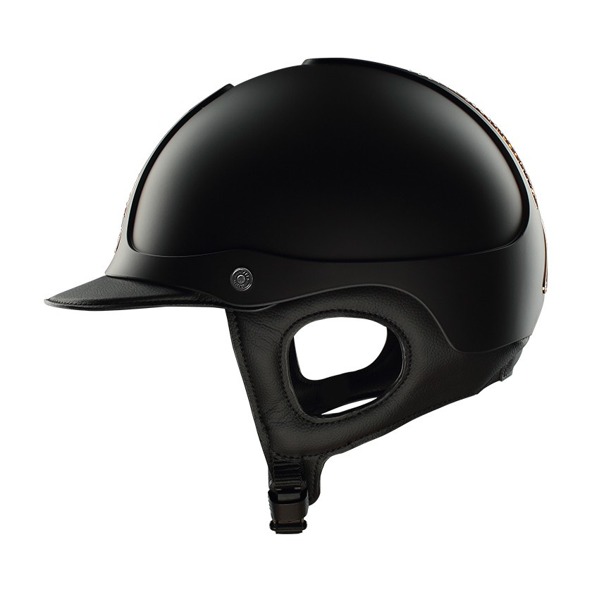 Kaski jeździeckie Antares Galaxy Precision są natychmiast rozpoznawalne dzięki czarnej skorupie i miedzianym chromowanym akcesoriom.