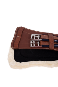 Syntetyczna podszewka z owczej skóry zwiększa również poczucie komfortu i dobrego samopoczucia konia. Co więcej, zapobiega otarciom lub podrażnieniom u koni o wrażliwej skórze podczas zakładania popręgu. Podszewka ma wiele zalet, ponieważ można ją prać i jest hipoalergiczna (produkt sprzedawany oddzielnie).