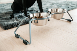 nawet przed najbardziej nieostrożnymi psami. Miski ze stali nierdzewnej są dostarczane z podstawą.
