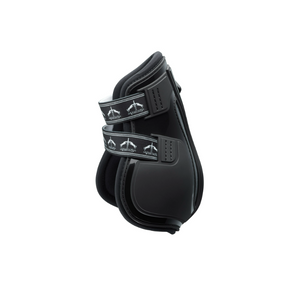 Dzięki nowej konstrukcji i najnowocześniejszym technologiom, ochraniacze te poprawiają zdolności skokowe konia. Anatomiczna, amortyzująca, podwójna skorupa i wzmocnione elastyczne paski chronią konia, optymalizując ruch, poprawiając pracę zadniej nogi podczas galopu i skoku. Zaprojektowane dla osób dążących do doskonałości i dopracowane dla uzyskania maksymalnych rezultatów.