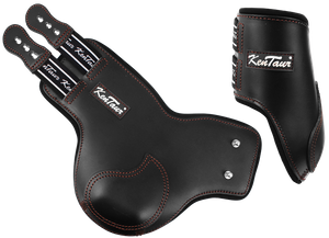 Modne skórzane ochraniacze skokowe na tylne nogi.