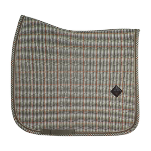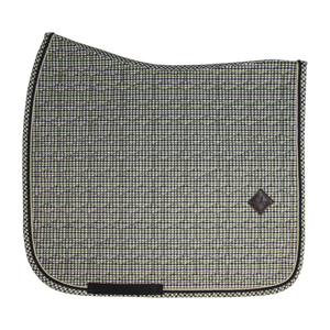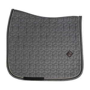 Czaprak ten jest drukowany we wzór Pied-de-Poule, klasyk mody, który wnosi rytm i elegancję, na mikrofibrze. Czaprak ma pikowany wzór w pepitkę i podwójnie skręconą lamówkę w podobnych kolorach.