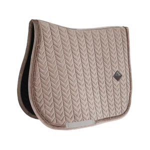 Czaprak Velvet Pearls nie ma irytujących pasków, które można przymocować do siodła. Aby utrzymać się na miejscu pod siodłem, wewnętrzna część czapraka ma strukturę wafla. Wnętrze o strukturze wafla jest szybkoschnące i zapewnia amortyzację pod siodłem. Aby mieć pewność, że strzemiona nie uszkodzą pereł, obok pasków popręgowych umieszczono specjalne wycięcie na perły. Naszywka z logo ze sztucznej skóry jest umieszczona nieco wyżej na czapraku, dzięki czemu pozostaje miejsce na haft.
