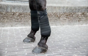 Bandaże mają mocne zapięcie na rzep. Zostały zaprojektowane z wysokiej jakości miękkiego polaru, aby uniknąć mechacenia, w połączeniu z gumką zapewniającą rozciągliwość.