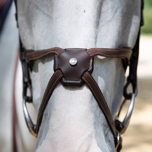 Nachrapnik meksykański jest wyściełany i podszyty miękką skórą cielęcą, zapewniając wyjątkowy komfort bez ucisku na wrażliwe części głowy konia, takich jak nerwy twarzowe i grzbiet nosa. Nachrapnik nie zawiera pierścieni, które nie uciskają i nie ocierają grzebienia twarzowego konia.